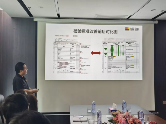 隨后,路福品控小組成員,即采購(gòu)、檢驗(yàn)、倉(cāng)儲(chǔ)三個(gè)部門的負(fù)責(zé)人也對(duì)本次項(xiàng)目改善具體效果、收獲及未來(lái)計(jì)劃等方面進(jìn)行匯報(bào)。除肉眼可見的改善之外,路福員工自身也在項(xiàng)目之中得到了提升,在品控意識(shí)、對(duì)標(biāo)準(zhǔn)的理解、工作流程和方法等方面碩果累累,這些也是本次品控體系項(xiàng)目的初衷和目的之一。