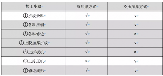 使用傳統(tǒng)加厚方法加厚出來的板件修邊后粘合處亦無空隙、裂縫等不良情況出現(xiàn)。
