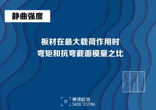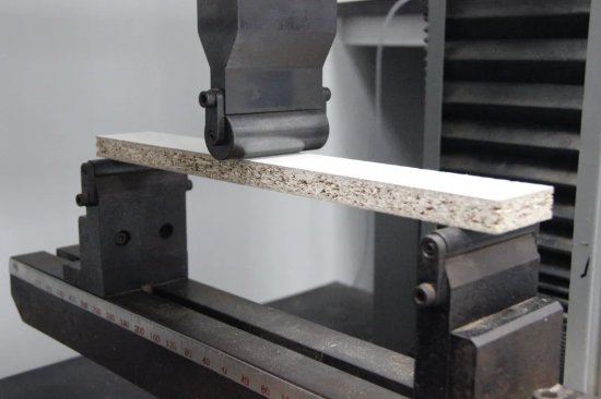 靜曲強度是人造板做為結(jié)構(gòu)部件的重要性能,是家具板材在最大載荷作用時的彎矩和抗彎截面模量之比,即人造板在受力彎曲到斷裂時它所能承受的壓力強度,用MPa來表示。