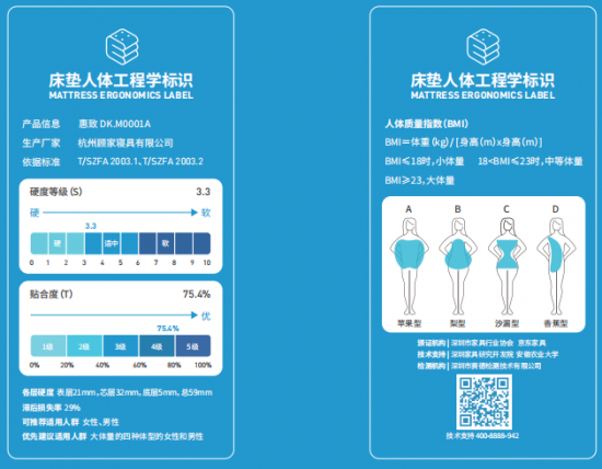 顧家家居部分產(chǎn)品床墊人體工程學(xué)標(biāo)識(shí)