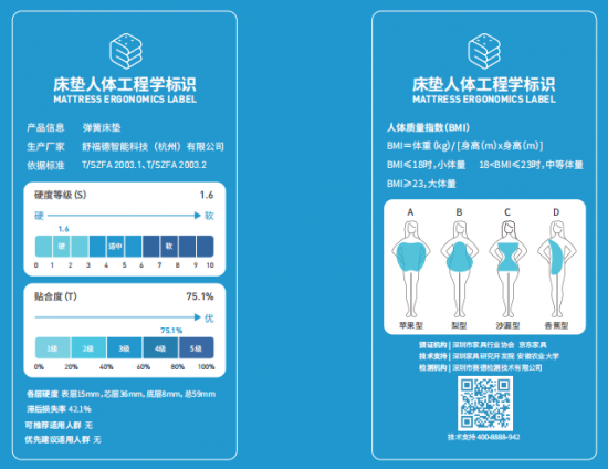 舒福德相關(guān)產(chǎn)品床墊人體工程學(xué)標(biāo)識(shí)