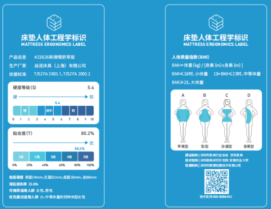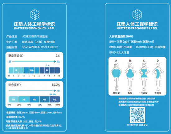 絲漣相關(guān)產(chǎn)品床墊人體工程學(xué)標識