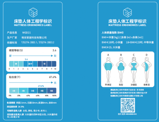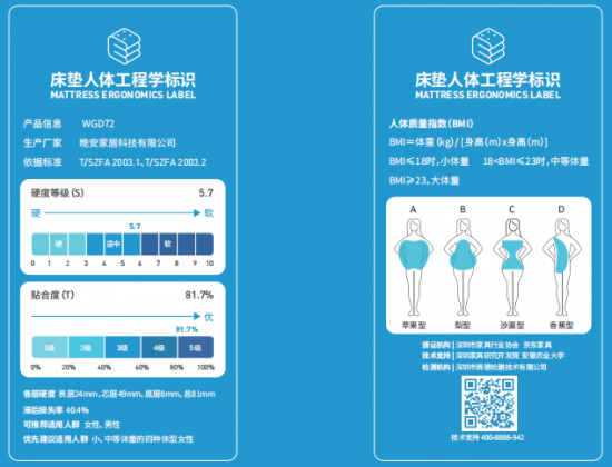 晚安產(chǎn)品床墊人體工程學(xué)標識