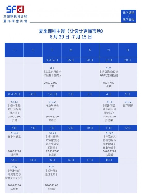 SFD夏/冬主案設計師集訓營課表