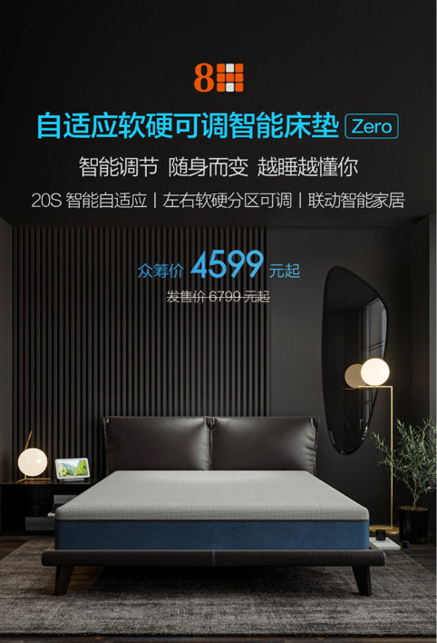 小米眾籌推出8H自適應(yīng)軟硬可調(diào)智能床墊Zero,這是繼智能電動(dòng)床后,8H又一智能家居產(chǎn)品,此款床墊可智能判斷左右分區(qū),根據(jù)不同體態(tài)配置適合的軟硬度,同時(shí)具有瑜伽助眠模式,這對(duì)于失眠人群應(yīng)該是個(gè)不錯(cuò)的選擇。對(duì)比市面上動(dòng)輒萬元以上的智能床墊,小米眾籌這款智能床墊4599起,價(jià)格確實(shí)讓人驚喜。