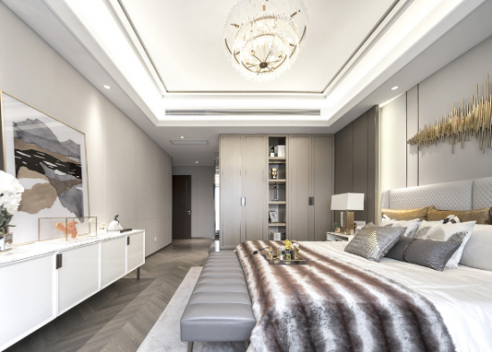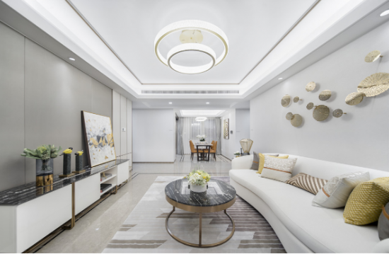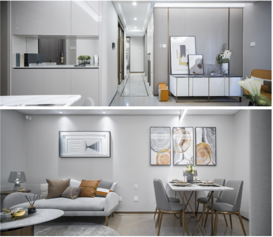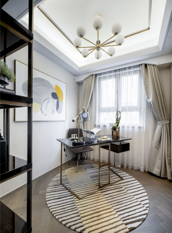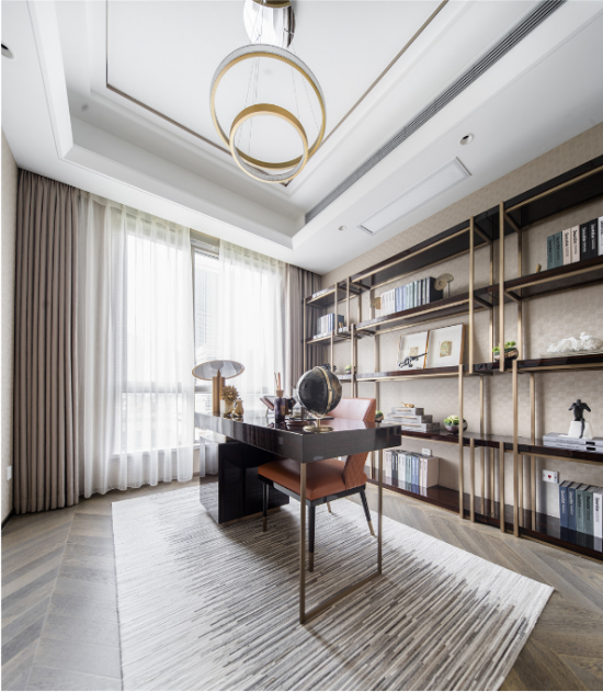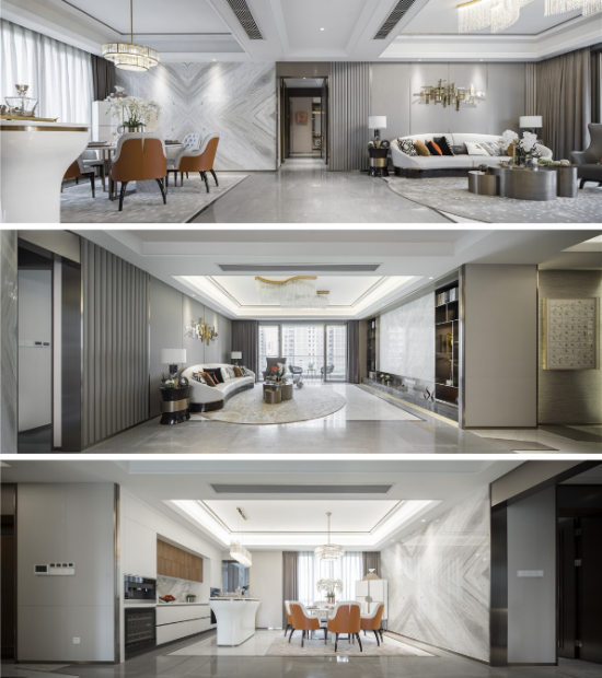 【黃柏元】:該作品因位于上海浦東陸家嘴高級地段,建筑在外觀設(shè)計上就很時尚,全部外墻采用鋁板現(xiàn)代設(shè)計,所以我們在室內(nèi)設(shè)計上也延續(xù)了這一特點(diǎn),都采用現(xiàn)代、輕奢、時尚的設(shè)計。當(dāng)然因我們作品的定位人群是高端中年族群,所以我們在設(shè)計風(fēng)格上出了時尚輕奢外,也加入了一些現(xiàn)代簡歐元素,讓現(xiàn)代與古典融合,賦予了作品幾分貴族氣息。