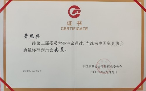 鴻發(fā)家具董事長蕭照興當(dāng)選中國家具協(xié)會質(zhì)量標(biāo)準(zhǔn)委員會委員