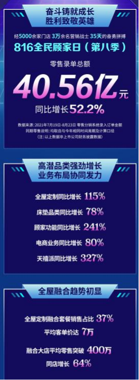 零售錄單總額40.56億,同比大增52.2%!備受關(guān)注的816全民顧家日剛剛過(guò)去。從常規(guī)視角來(lái)看,它當(dāng)然是一場(chǎng)轟動(dòng)家居圈的營(yíng)銷大事件。