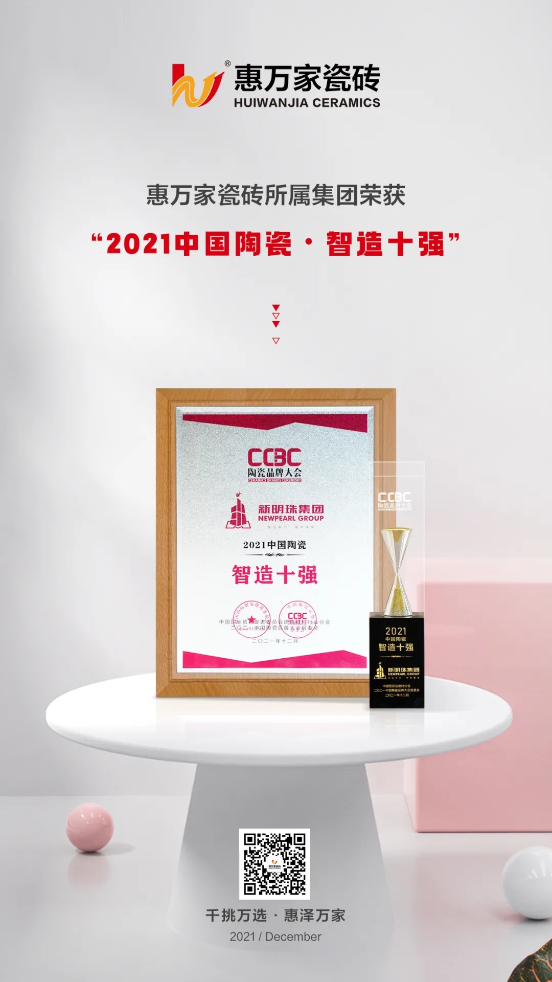 惠萬家瓷磚憑借頭部陶企深厚設(shè)計底蘊、龐大的研發(fā)團隊,強大的自主創(chuàng)新研發(fā)能力,在眾多品牌中脫穎而出,榮獲【2021中國陶瓷•創(chuàng)新金獎】稱號。