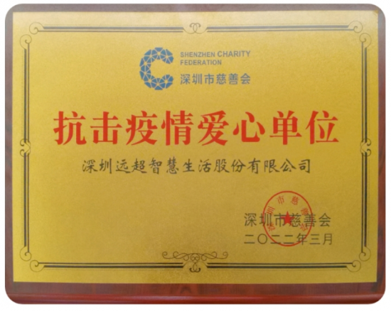 深圳遠超智慧生活股份有限公司榮獲“抗擊疫情愛心單位”