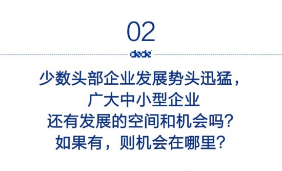 這個(gè)問(wèn)題可以分兩個(gè)層次來(lái)看:一是頭部企業(yè)是靠什么發(fā)展起來(lái)的;二是接下里的發(fā)展空間和機(jī)會(huì)之所在。1)頭部企業(yè)是靠什么發(fā)展起來(lái)的首先,要搞清楚這些企業(yè)是如何成為頭部企業(yè)的,然后再搞清楚其發(fā)展勢(shì)頭為什么會(huì)迅猛,其還必定存在著的薄弱環(huán)節(jié)在哪里,從中不難找到突破口。不能簡(jiǎn)單地認(rèn)為自己的企業(yè)已經(jīng)沒(méi)有機(jī)會(huì)了、就此認(rèn)命了。如果是這種心態(tài),還說(shuō)什么呢?有信心不一定能成,因?yàn)檫€需要很多東西來(lái)支撐,但沒(méi)信心是一定不成的,那叫未戰(zhàn)先降。這樣,才能對(duì)照自己曾經(jīng)錯(cuò)失了哪些機(jī)會(huì),檢討自己所走過(guò)的路為什么一直不那么順,問(wèn)題出在哪里,該怎么修整。或許會(huì)發(fā)現(xiàn)其實(shí)我們自己是完全可以做好的,只要認(rèn)真總結(jié)經(jīng)驗(yàn)教訓(xùn),還是有可能成為下一個(gè)贏家的,畢竟時(shí)代在進(jìn)步,頭部企業(yè)不會(huì)一勞永逸。在很大程度上講,頭部企業(yè)的成功不是因?yàn)樗麄冇卸鄥柡?,或者更?zhǔn)確地說(shuō),不是因?yàn)樵谄淦鸩诫A段和發(fā)展初期所擁有的資源和能力比你有多強(qiáng)、產(chǎn)品有多好,或者有多創(chuàng)新,而是在于他們看到了機(jī)會(huì)、搶占了先機(jī),先于其他企業(yè)布局好了市場(chǎng),以及與之相匹配的組織方式有效且高效,以優(yōu)化能力與速度而非提供物的與眾不同取勝的。也就是說(shuō)通過(guò)“跑馬圈地”,這些頭部企業(yè)在市場(chǎng)占有率和產(chǎn)能兩個(gè)方面交替著實(shí)現(xiàn)了規(guī)模化。一旦規(guī)模起來(lái)了,那么資本實(shí)力就會(huì)雄厚,因?yàn)槲镔Y集采的成本就能降低、生產(chǎn)制造系統(tǒng)的邊際成本就能下降、市場(chǎng)觸達(dá)的網(wǎng)點(diǎn)就會(huì)增多,市場(chǎng)機(jī)會(huì)就會(huì)同步增加,品牌影響力就會(huì)加大。手上的牌就多了、硬了,競(jìng)爭(zhēng)力自然就上來(lái)了。我們一直不認(rèn)同一種觀點(diǎn),即很多人經(jīng)常會(huì)說(shuō):“人家小企業(yè)成本低,我們規(guī)模大做不下來(lái)”。這是極為錯(cuò)誤的,如果在紅海市場(chǎng)里你的價(jià)格比不過(guò)小企業(yè),那么只能說(shuō)你的組織系統(tǒng)出了問(wèn)題,管理上的漏洞太多、資源已經(jīng)錯(cuò)配、標(biāo)準(zhǔn)化體系缺失、效率太低、邊際成本設(shè)定錯(cuò)誤,規(guī)模效應(yīng)沒(méi)有得到應(yīng)有的發(fā)揮。不要以“他們可以偷稅漏稅而我們做不到”來(lái)試圖證明自己的觀點(diǎn)正確,那樣的企業(yè)實(shí)際上根本不具備綜合競(jìng)爭(zhēng)力,不可持續(xù)。何況在真正的規(guī)模效應(yīng)面前,那些做法根本不堪一擊,否則那些上市公司稅務(wù)如此規(guī)范,憑什么還能做大做強(qiáng)?所以人不要總是相信自己愿意相信的事。我們絕大多數(shù)企業(yè),眼睛只會(huì)盯著自己每年的營(yíng)收和利潤(rùn),似乎感覺(jué)還不錯(cuò),甚至還有增長(zhǎng),所以往往會(huì)很滿足、小富即安。而頭部企業(yè)考慮問(wèn)題的角度是不同的,他們的視野是全域市場(chǎng),即看到的是市場(chǎng)容量、發(fā)展空間、競(jìng)爭(zhēng)格局和成長(zhǎng)速度。市場(chǎng)的本質(zhì)不在于你自己做得有多好,而是在于你是否比別人更好、你的相對(duì)競(jìng)爭(zhēng)力是否足夠。事實(shí)上,如果企業(yè)自身的發(fā)展速度跟不上市場(chǎng)與行業(yè)整體發(fā)展速度的時(shí)候就意味著落后,意味著自身的市場(chǎng)份額在縮小,意味著正在不知不覺(jué)中被緩慢地?cái)D壓著空間,甚至正在被溫和地淘汰掉,而要命的是你往往還不能自知。企業(yè)靠守是守不住的,只能出擊!一旦踏上創(chuàng)辦企業(yè)的征程,那么你的生命注定是停不下來(lái)的,唯有不斷進(jìn)取方能活著走向未來(lái),正所謂“逆水行舟,不進(jìn)則退”。中國(guó)是一個(gè)發(fā)展中的國(guó)家,在一個(gè)發(fā)展中的產(chǎn)業(yè)和市場(chǎng)環(huán)境下,要獲得成功,能力不是不重要,但機(jī)會(huì)更重要。市場(chǎng)競(jìng)爭(zhēng)與演化有一個(gè)基本規(guī)律,即:成熟市場(chǎng)是完成洗牌后整合的結(jié)果,這就在很大程度上會(huì)呈現(xiàn)出強(qiáng)者恒強(qiáng),而弱者則會(huì)被逐漸擠出紅海主流市場(chǎng),甚至慘遭淘汰的局面。其標(biāo)志是呈現(xiàn)出清晰的兩級(jí)分化格局,即:要么成為紅海市場(chǎng)中的規(guī)模企業(yè),要么在高端市場(chǎng)以全要素提升和差異化競(jìng)爭(zhēng)占據(jù)一席之地。除此之外,傳統(tǒng)的“中間路線”和“東邊不亮西邊亮”的思想將會(huì)越來(lái)越?jīng)]有出路。中間路線不是絕對(duì)無(wú)法生存,但將越來(lái)越艱難?;蛘?,更準(zhǔn)確地說(shuō),即便要做中端市場(chǎng),原來(lái)的玩法都已經(jīng)不能適應(yīng)新的形勢(shì),將難以為繼,必須有新思維。在疫情和經(jīng)濟(jì)低谷期,這種情形會(huì)被進(jìn)一步放大。因?yàn)?,在?jīng)濟(jì)低谷期,由于各行各業(yè)都受連鎖影響,消費(fèi)者手上的錢(qián)有減無(wú)增,很多人工作都難以保障,哪還敢貸款買房?所以在接下來(lái)的