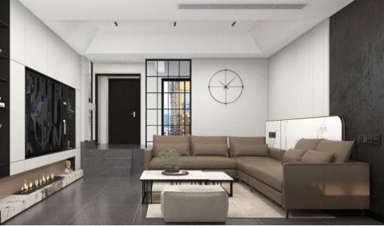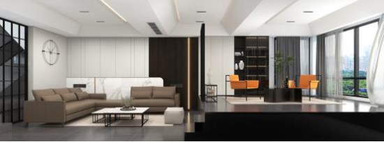 黑白灰的空間里加點(diǎn)亮色調(diào)和,客廳的整體基調(diào)更加和諧統(tǒng)一,臺(tái)階設(shè)計(jì)讓整體格局形成高低差觀感,更顯生動(dòng)性與趣味性,劃分區(qū)域,同樣不失互動(dòng)性。