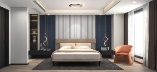 次臥空間深淺色相間處理,清雅靜謐,簡單陳設(shè)只滿足基本的睡眠功能,定制墻柜和懸空床頭柜,增加儲(chǔ)物空間。CBD家居·金豹 | J057軟床,淺褐色皮質(zhì)親和力更佳,床屏+飽滿雙靠包設(shè)計(jì),打造藝術(shù)范就寢空間。