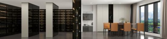 儲(chǔ)物間是居主的私人酒窖,定制柜體排列有序,成為一處展覽廳,彰顯生活品味。