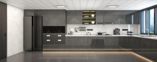 L型動(dòng)線走向靈動(dòng)自如,洗-切-煮一氣呵成。整體低調(diào)純粹的深灰色,提高空間質(zhì)感,櫥柜下方線燈設(shè)計(jì),烘托出生活的溫馨與煙火氣。