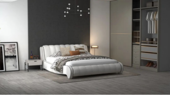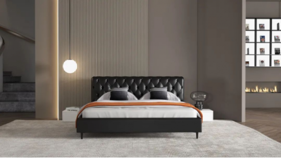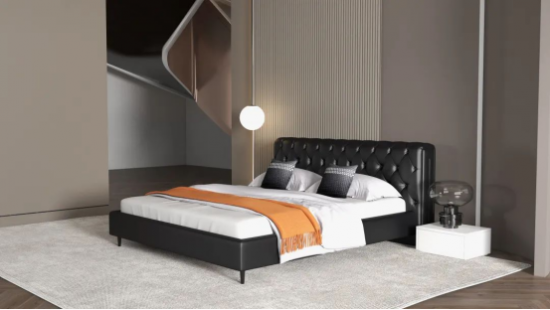 CBD家居·黑金 | HZ052軟床,耀夜黑莊重高貴,點綴出空間的復古感。軟床靠包的菱格拉點式設計,飽滿立體,讓每一次倚靠更加舒適,淺邊內(nèi)嵌床尾不占過多空間,簡潔干練,穩(wěn)固床墊,兼具美感與實用性。