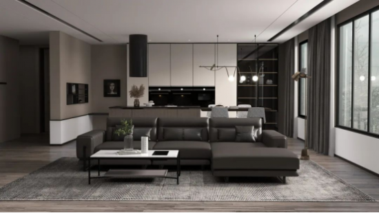 CBD家居·智慧 | Z097沙發(fā),白鯨灰是黑色與灰色的和諧過渡,比黑色略顯柔和,但同樣不失深色系的硬朗氣質(zhì),很好地營造空間質(zhì)感。沙發(fā)構(gòu)型低矮,寬邊扶手兼具承托與置物作用,靠背可前后推拉調(diào)節(jié),加寬坐墊,生活百變。