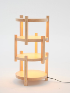 《Pami》作品的設(shè)計靈感來自設(shè)計師對一種可以給空間帶來溫暖和寧靜感的物體的渴望。其次是考慮作品的多功能性,除了本身是一件美麗的裝飾品外,這件作品還具有桌子、儲物和照明的功能。它的大小和形狀使其小巧便攜,因此可以放置在家中的不同空間。每一層都連接著一個黃銅嵌件,通過該嵌件安裝 LED 照明。設(shè)計團隊之所以選擇美國楓木,是因為它的顏色較淺,幾乎是半透明的色調(diào),而且它的硬度加強了作品的穩(wěn)定性。
