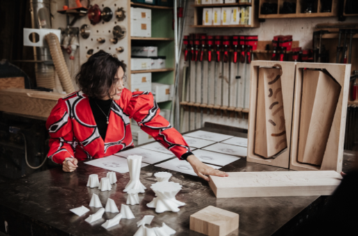 設計師Eleanor Hill在搭建Pirouette作品小樣