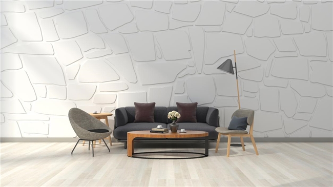白色沙發(fā)椅在灰色地毯的映襯下柔軟馥郁