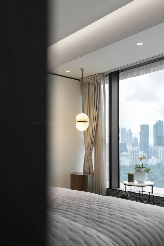 套房式的主臥,是專屬周先生與妻子的小天地。瞰景大飄窗、獨(dú)立衛(wèi)浴、私人衣帽間,在這里可以隔絕世界喧囂,悠享白天的從容優(yōu)雅與夜間的私密安靜。