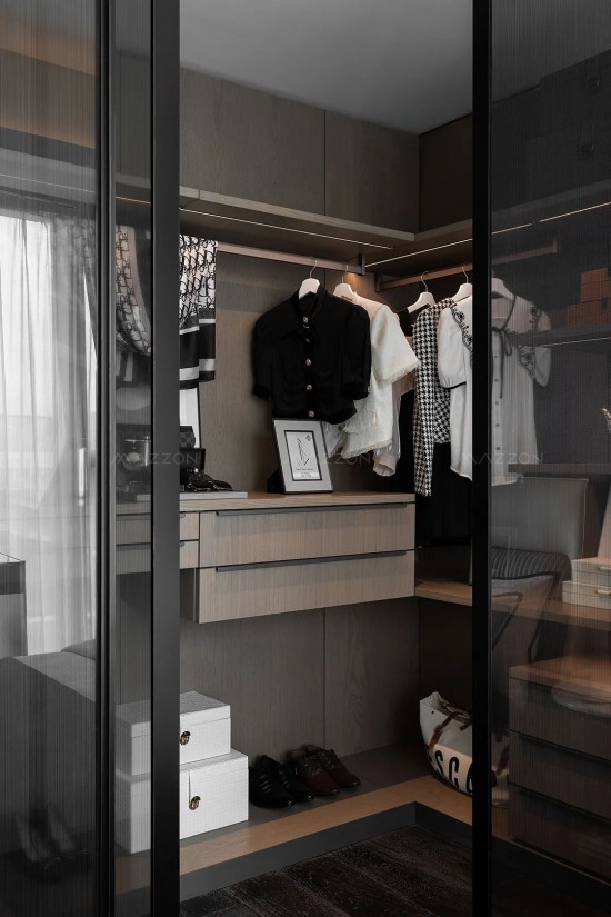精致輕奢的衣帽間里,衣物整齊的擺放著。每天清晨起來,陽光透過玻璃折射進(jìn)來,一目了然的衣帽間,從容開啟每一天。