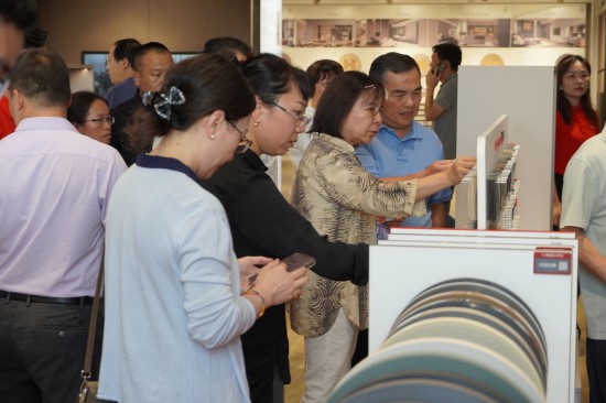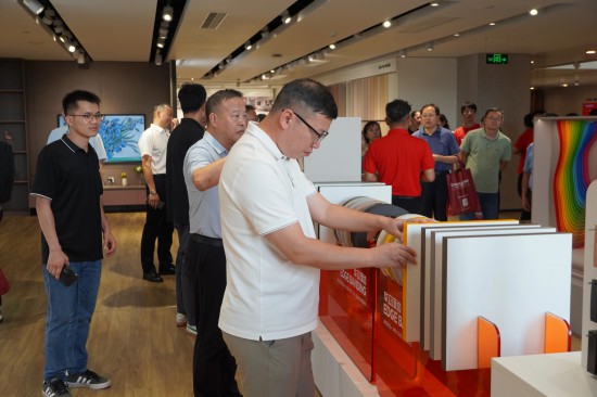 會議結(jié)束后,與會專家及領導團在華立股份的熱情邀請下,共同參觀了公司的展廳。在展廳內(nèi),專家們近距離考察了華立股份在綠色建材領域的最新研發(fā)成果與生產(chǎn)實力,對其在甲醛釋放控制、氣味優(yōu)化等方面的技術(shù)突破給予了高度評價。