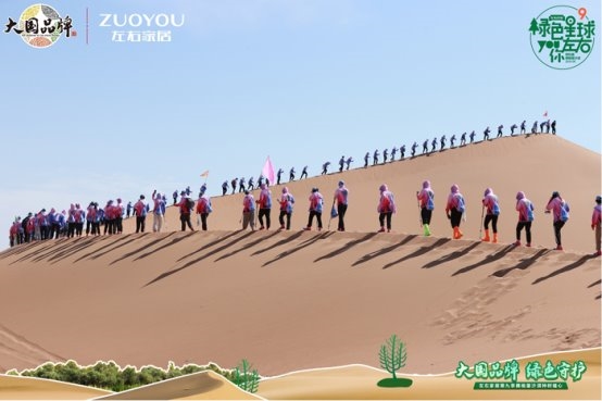 「綠色星球」第9季,左右家居特別邀請(qǐng)到中國(guó)綠化基金會(huì)副秘書長(zhǎng)繆光平、CCTV《大國(guó)品牌》總出品人吳綱的一同參與。在左右家居董事長(zhǎng)黃華坤的帶領(lǐng)下,公益團(tuán)一行徒步深入騰格里沙漠腹地,用腳步丈量和感受當(dāng)?shù)貒?yán)峻的自然環(huán)境。