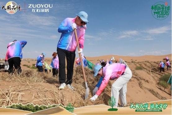 踐行公益環(huán)保事業(yè),構(gòu)建綠色生態(tài)長(zhǎng)城。8月22日,由左右家居發(fā)起,中國(guó)綠化基金會(huì)、CCTV《大國(guó)品牌》共同參與的「大國(guó)品牌 綠色守護(hù)」綠色星球第9季種樹植心公益活動(dòng)在阿拉善騰格里沙漠正式啟動(dòng),持續(xù)助力“百萬森林”計(jì)劃,為阿拉善“樹”起生態(tài)綠屏。