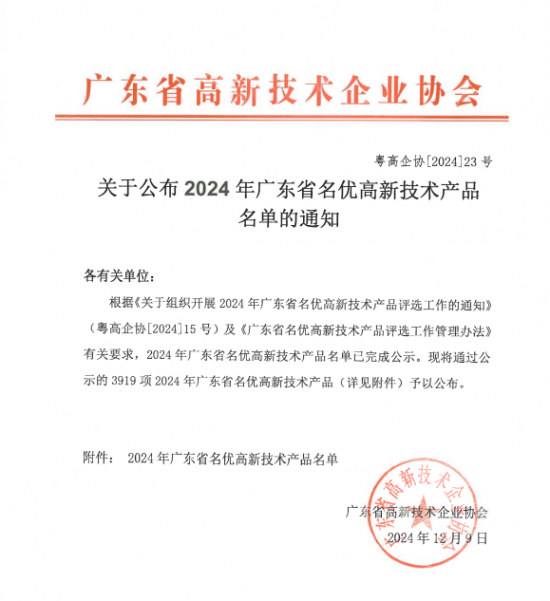 據(jù)悉,廣東省名優(yōu)高新技術(shù)產(chǎn)品評(píng)選是由廣東省科技廳和廣東省高新技術(shù)企業(yè)協(xié)會(huì)共同推出的一項(xiàng)省級(jí)產(chǎn)品榮譽(yù)認(rèn)證,旨在促進(jìn)科技創(chuàng)新和技術(shù)攻關(guān),引導(dǎo)企業(yè)以高質(zhì)量科技供給助推高質(zhì)量發(fā)展。該評(píng)選從技術(shù)水平、知識(shí)產(chǎn)權(quán)、市場(chǎng)影響力、環(huán)保情況以及產(chǎn)品獲得的榮譽(yù)等五項(xiàng)指標(biāo)進(jìn)行全面評(píng)價(jià),經(jīng)過(guò)自主申報(bào)、形式審查、專(zhuān)家評(píng)選和嚴(yán)格的審核復(fù)核程序,最終遴選出了一批創(chuàng)新能力突出、技術(shù)先進(jìn)、質(zhì)量可靠、市場(chǎng)前景好的高新技術(shù)產(chǎn)品。