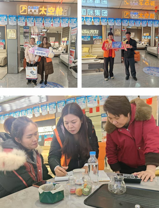 公司大力支持此次河源雙十二活動(dòng),活動(dòng)現(xiàn)場(chǎng)布置精美禮品堆擺放,吸引顧客到店親身體驗(yàn)歐露絲太空艙床墊產(chǎn)品,促進(jìn)現(xiàn)場(chǎng)接連開(kāi)單!