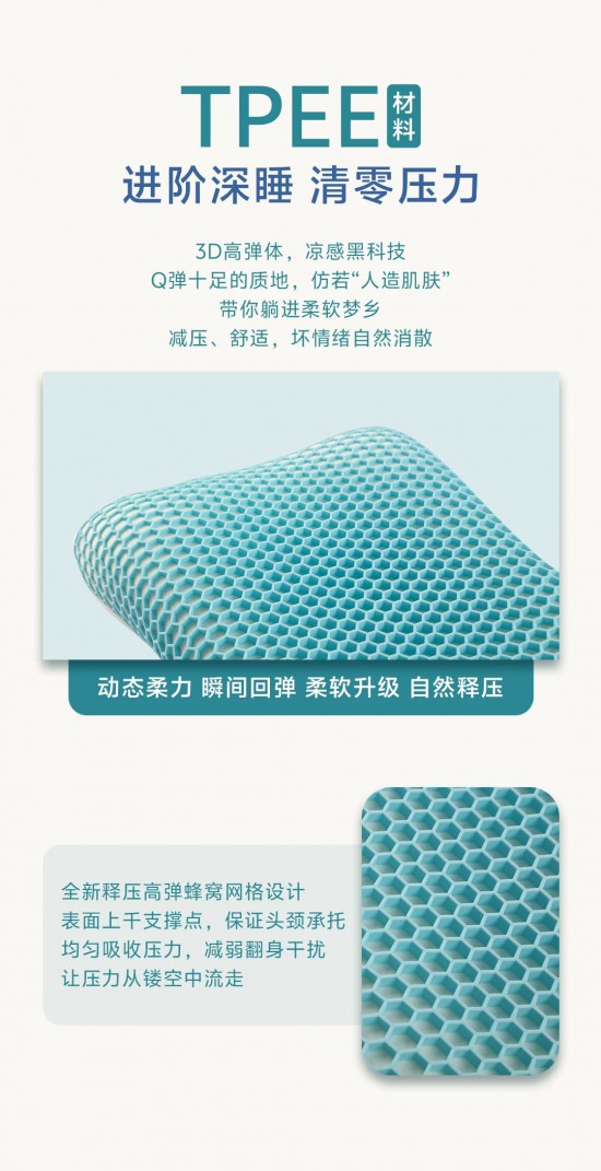核心提示:3D高彈體,涼感黑科技,Q彈十足的質(zhì)地,仿若“人造肌膚’,帶你躺進(jìn)柔軟夢(mèng)鄉(xiāng),減壓、舒適,壞情緒自然消散。