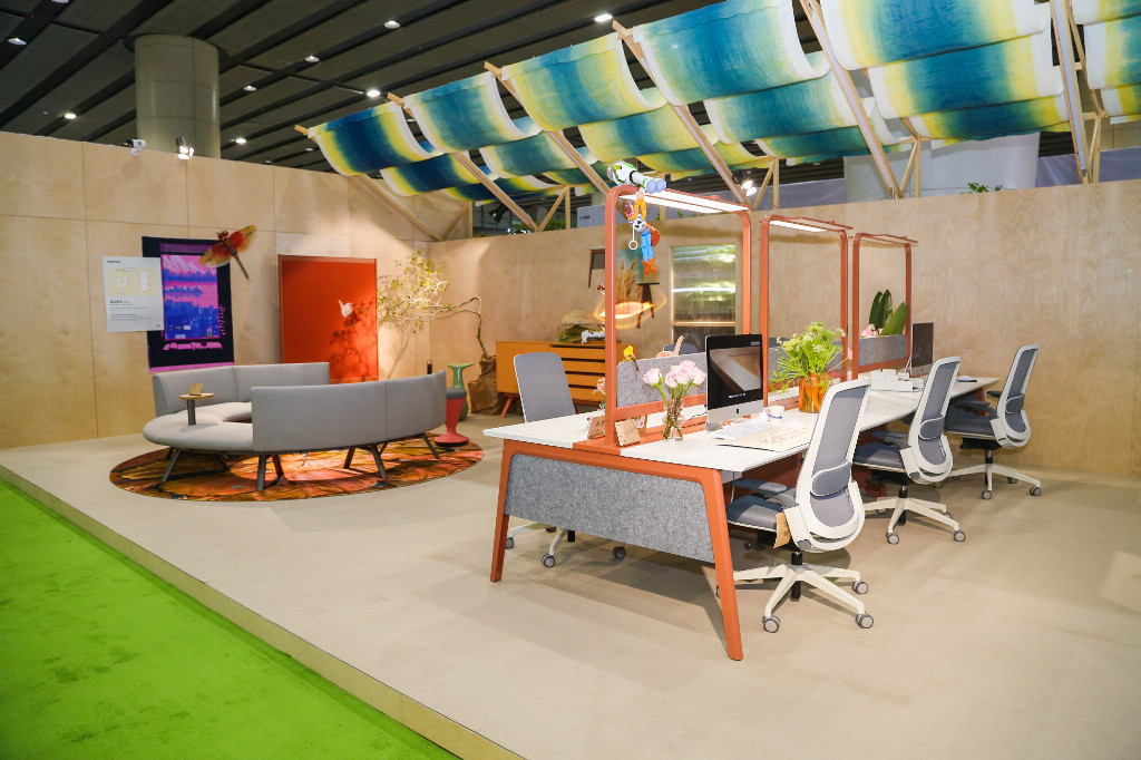 據(jù)圣奧品牌中心相關負責人介紹,“森溪拾趣”的靈感汲取自山林溪澗的自然景觀,旨在通過辦公產品這一載體,為用戶營造一個既靜謐又充滿活力的辦公環(huán)境。“這些產品不僅滿足了人們對于安靜工作空間的需求,同時還保留了開放環(huán)境所帶來的協(xié)作便捷性,實現(xiàn)了動靜相宜、高效辦公的完美結合。”譬如,針對靈感激發(fā)需求打造的“靈動協(xié)作空間”,推出米庫系列產品,在有限的辦公空間里以模塊化、可移動、多功能設計催化無限的辦公可能;針對職員交流、商務洽談場景,圣奧還展出新品靈多 Pro 辦公桌,全局色彩采用限定珊瑚橙充分調動情緒,半圍合式布局搭配通透隔斷,既帶來了足夠空間感,也保障了洽談與互動的私密性,無縫切換商務洽談、創(chuàng)意研討、團隊協(xié)作等多元場景。