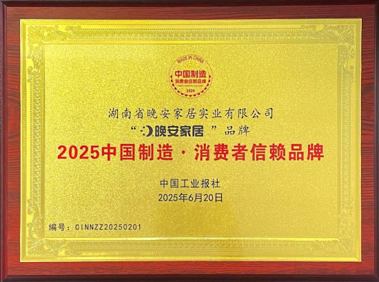 近日,中國工業(yè)報社舉辦2025年第三屆“中國制造·消費者信賴品牌”推介活動,以消費品工業(yè)高質(zhì)量發(fā)展為導(dǎo)向,致力于推介一批在“增品種、提品質(zhì)、創(chuàng)品牌”方面表現(xiàn)卓越的品牌與企業(yè),以更好地滿足和創(chuàng)造消費需求,增強消費對經(jīng)濟的拉動作用,推動消費品工業(yè)加快向中高端邁進,助力自主品牌發(fā)展壯大,切實提升企業(yè)核心競爭力,講好中國品牌故事,傳遞中國品牌的正能量,攜手推動中國品牌走向世界。晚安家居集團憑借品牌影響力、服務(wù)體系、創(chuàng)新能力、綠色環(huán)保、社會責(zé)任等方面的卓越成績,榮獲“2025中國制造·消費者信賴品牌”稱號。