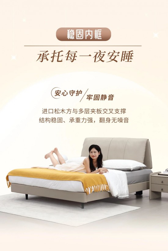 核心提示:空間從容且舒展,輕盈體量,通透視覺,內收高腳設計,床體翩然懸浮清潔無憂,詮釋生活詩意。