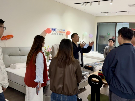 郭木龍總裁帶領商學院部分老師來到汕頭香江歐露絲太空零壓力床墊品牌專賣店做開業(yè)指導店面布局,培訓專業(yè)產(chǎn)品知識,實戰(zhàn)演練助力經(jīng)銷商提高終端銷售。