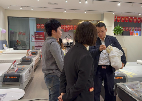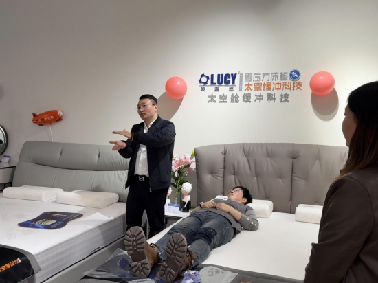 郭總模擬銷售現(xiàn)場,用自己的專業(yè)健康睡眠知識為消費者推薦適合他們產(chǎn)品,現(xiàn)場促成開單。