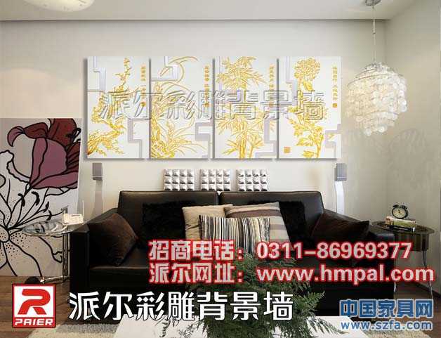 派爾彩雕背景墻的主要材料由美國(guó)納瓷、活性炭、云母等組成,并由光觸媒面漆表面處理。