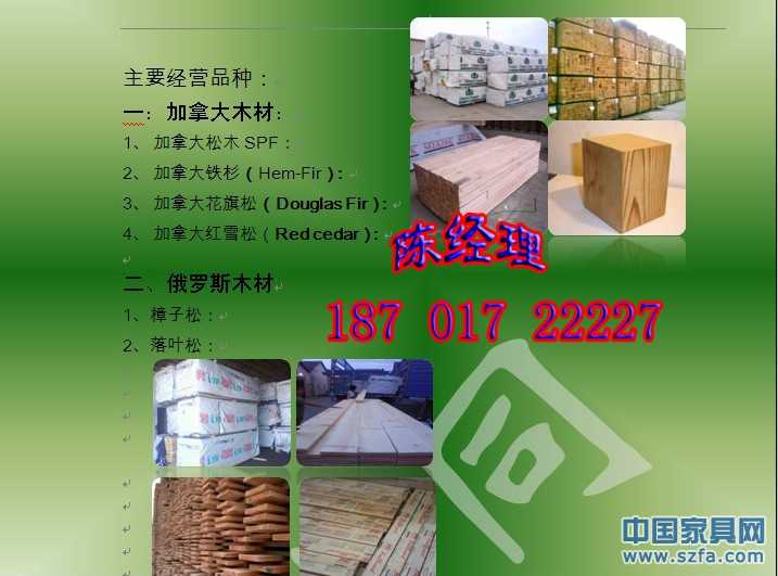 花旗松以優(yōu)異的強度重量比聞名世界,具有良好的握釘力和固定力。邊材顏色淺、寬度窄。心材由黃色到紅褐色不等。早木及晚木顏色分別明顯,后者有更深、更尖的帶狀。這種顏色差別造成平鋸時木紋形狀不同。木材質(zhì)地細(xì)微到中等,紋路筆直、非滲水性,可以順紋里形狀加工成多種產(chǎn)品,表面容易上漆,并可以保持各種染色和清漆。 花旗松是加拿大強度最大的商用軟木之一。