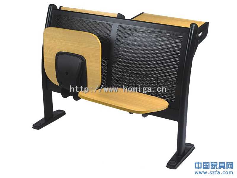 1)椅座:基材采用優(yōu)質(zhì)多層熱壓成型板,面壓櫸木色防火板,板面為光面,厚度達15mm, 切面PVC封邊。座椅可回彈復(fù)位。