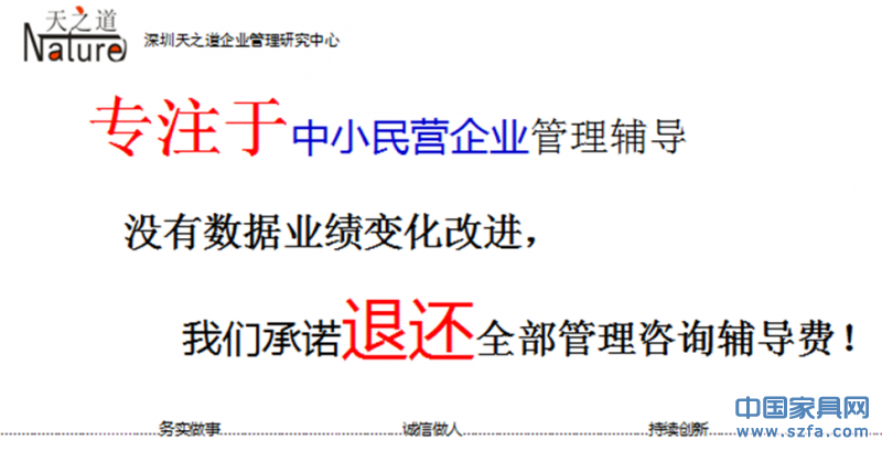深圳天之道企管專注國內中小民營企業(yè)管理咨詢與業(yè)績提升輔導,我們承諾沒有業(yè)績免收費?。?!
