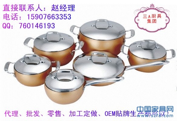 高檔不銹鋼廚具、湯鍋、炒鍋、煎鍋、奶鍋、蒸鍋、刀叉、碗筷碟子等眾多款式,批發(fā)、零售、代理還可以加工定做,OEM貼牌生產(chǎn)!廠家直銷?。?!櫥柜、炊具等產(chǎn)品配套的最佳選擇!消費(fèi)者最愛的禮品,贈(zèng)品!