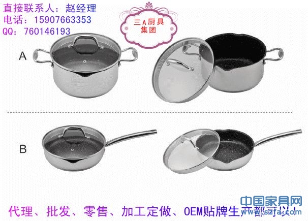 高檔不銹鋼廚具、湯鍋、炒鍋、煎鍋、奶鍋、蒸鍋、刀叉、碗筷碟子等眾多款式,批發(fā)、零售、代理還可以加工定做,OEM貼牌生產(chǎn)!廠家直銷?。?!櫥柜、炊具等產(chǎn)品配套的最佳選擇!消費(fèi)者最愛的禮品,贈(zèng)品!