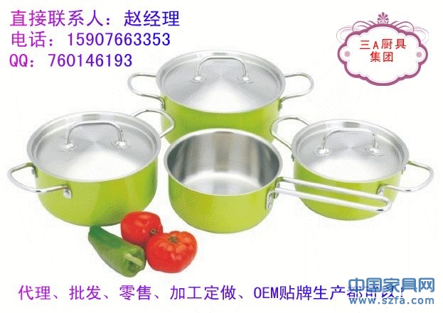 高檔不銹鋼廚具、湯鍋、炒鍋、煎鍋、奶鍋、蒸鍋、刀叉、碗筷碟子等眾多款式,批發(fā)、零售、代理還可以加工定做,OEM貼牌生產(chǎn)!廠家直銷?。?!櫥柜、炊具等產(chǎn)品配套的最佳選擇!消費(fèi)者最愛的禮品,贈(zèng)品!
