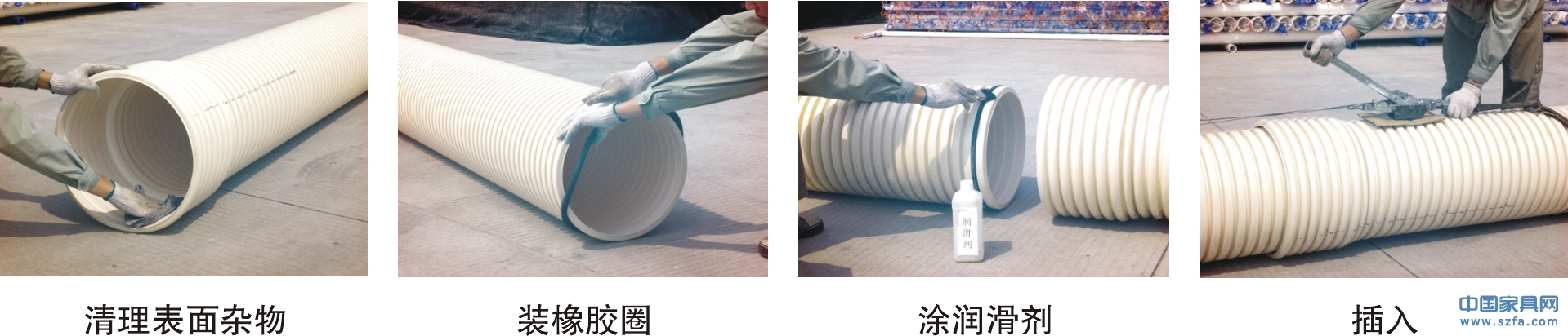 管材采用彈性密封圈承插連接。具體步驟: