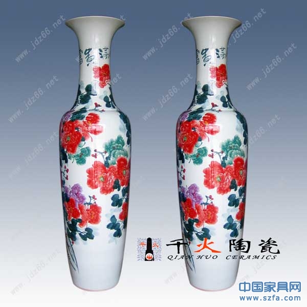 陶瓷大花瓶全手工繪制,高白泥手工拉胚,高白釉上底色,整個(gè)生產(chǎn)工序要經(jīng)過淘泥、摞泥、拉坯、修坯、繪畫、上釉、燒窯、成瓷等近七十道工藝才能制做完成,并可根據(jù)客戶特殊需要在大花瓶身上可燒制LOGO、公司名稱、人名、贈(zèng)言,紀(jì)念用語,年月日等。本產(chǎn)品多用于大廳、門廳、客廳等擺設(shè),主要適合于開業(yè)禮品,大樓建筑落成、工程竣工開業(yè)、奠基典禮、酒店賓館陳設(shè)、企事業(yè)單位喬遷、周年紀(jì)念 、學(xué)校校慶、搬遷新居等。