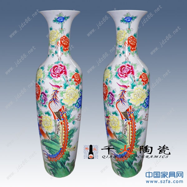 陶瓷大花瓶全手工繪制,高白泥手工拉胚,高白釉上底色,整個(gè)生產(chǎn)工序要經(jīng)過淘泥、摞泥、拉坯、修坯、繪畫、上釉、燒窯、成瓷等近七十道工藝才能制做完成,并可根據(jù)客戶特殊需要在大花瓶身上可燒制LOGO、公司名稱、人名、贈(zèng)言,紀(jì)念用語,年月日等。本產(chǎn)品多用于大廳、門廳、客廳等擺設(shè),主要適合于開業(yè)禮品,大樓建筑落成、工程竣工開業(yè)、奠基典禮、酒店賓館陳設(shè)、企事業(yè)單位喬遷、周年紀(jì)念 、學(xué)校校慶、搬遷新居等。