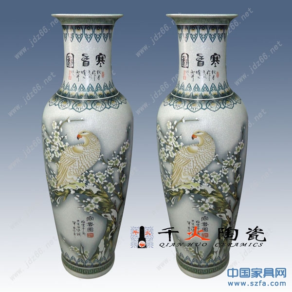 陶瓷大花瓶全手工繪制,高白泥手工拉胚,高白釉上底色,整個生產(chǎn)工序要經(jīng)過淘泥、摞泥、拉坯、修坯、繪畫、上釉、燒窯、成瓷等近七十道工藝才能制做完成,并可根據(jù)客戶特殊需要在大花瓶身上可燒制LOGO、公司名稱、人名、贈言,紀念用語,年月日等。本產(chǎn)品多用于大廳、門廳、客廳等擺設(shè),主要適合于開業(yè)禮品,大樓建筑落成、工程竣工開業(yè)、奠基典禮、酒店賓館陳設(shè)、企事業(yè)單位喬遷、周年紀念 、學(xué)校校慶、搬遷新居等。