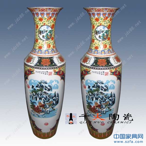 陶瓷大花瓶全手工繪制,高白泥手工拉胚,高白釉上底色,整個(gè)生產(chǎn)工序要經(jīng)過(guò)淘泥、摞泥、拉坯、修坯、繪畫、上釉、燒窯、成瓷等近七十道工藝才能制做完成,并可根據(jù)客戶特殊需要在大花瓶身上可燒制LOGO、公司名稱、人名、贈(zèng)言,紀(jì)念用語(yǔ),年月日等。本產(chǎn)品多用于大廳、門廳、客廳等擺設(shè),主要適合于開(kāi)業(yè)禮品,大樓建筑落成、工程竣工開(kāi)業(yè)、奠基典禮、酒店賓館陳設(shè)、企事業(yè)單位喬遷、周年紀(jì)念 、學(xué)校校慶、搬遷新居等。