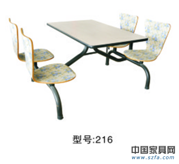 4人位配三聚氰胺桌面,架子是鐵定的圓管架,椅子有花紋。產(chǎn)品的款式、樣式、顏色繁多,不同的風格任君選擇。可定制。
